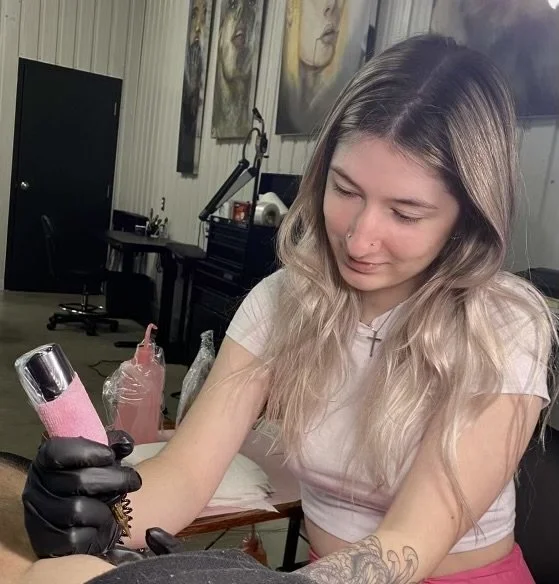 Maude tatoue depuis Janvier 2023 et a été formée par Chanelle Cursed. La qualité de ses tatouages font d’elle une artiste remarquable au point ou elle est récemment devenue co-propriétaire du studio Gypsy Art House, malgré seulement 2 ans d’expérience dans le domaine. Vous êtes entre d’excellentes mains avec elle!